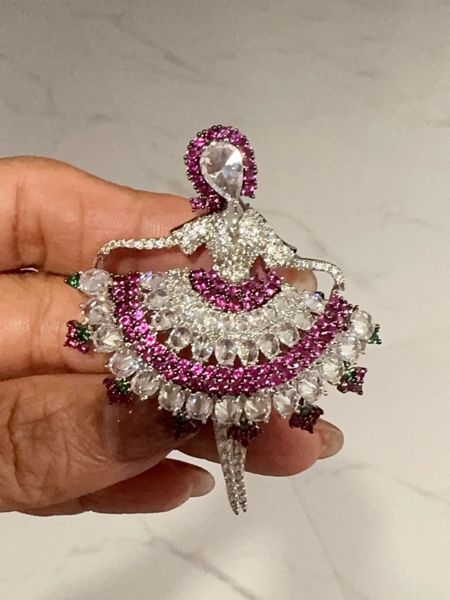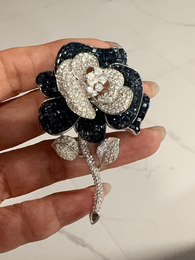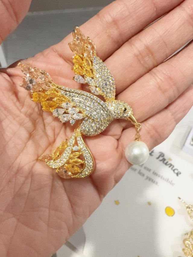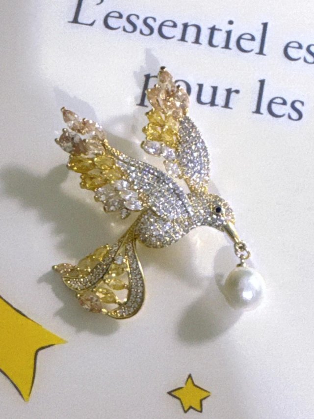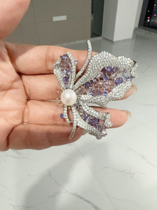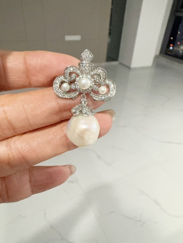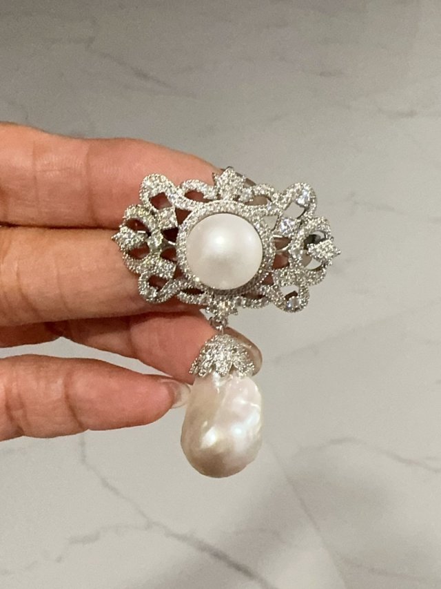 C62天然淡水珍珠/S925 銀/鋯石/ 胸針