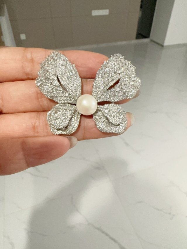 C58天然淡水珍珠/S925 銀/鋯石/ 胸針