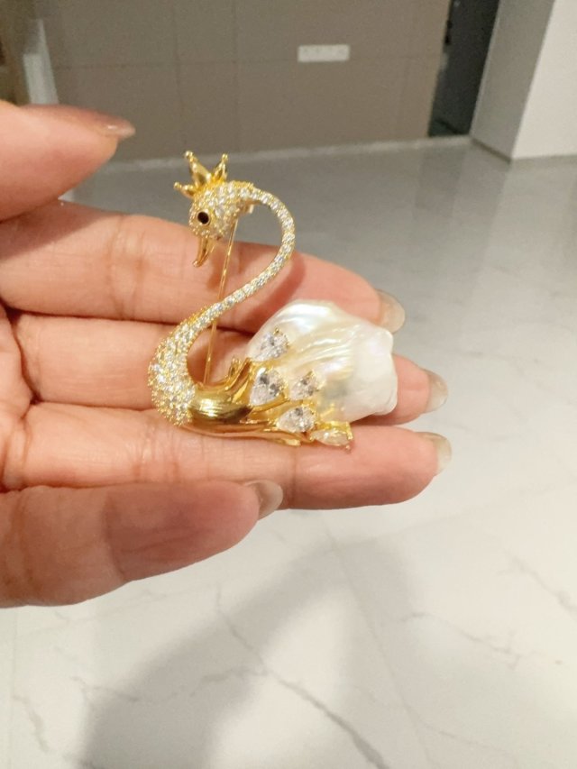 C52 天然淡水珍珠/S925 銀/鋯石/ 胸針