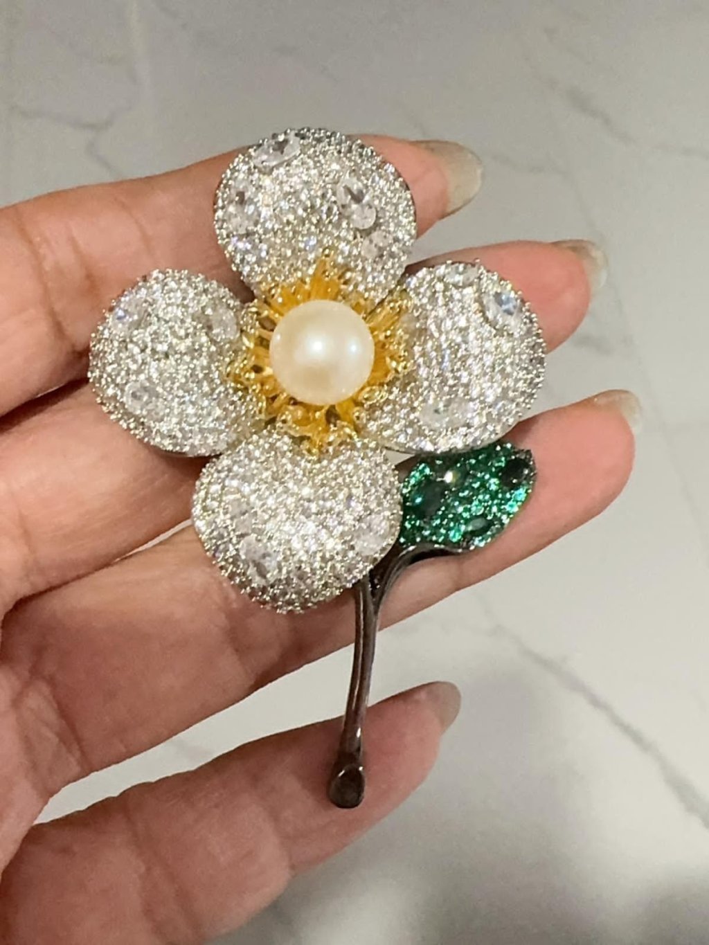 天然淡水珍珠/S925 銀/鋯石/ 胸針