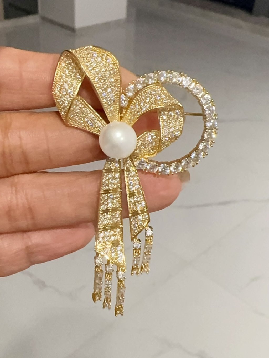 天然淡水珍珠/S925 銀/鋯石/ 胸針