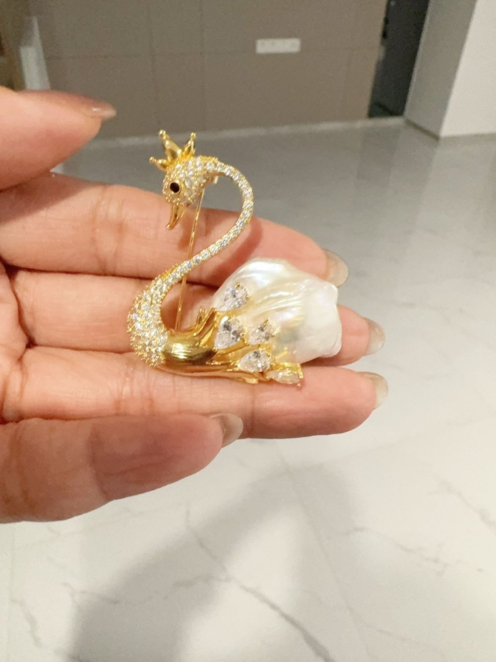 天然淡水珍珠/S925 銀/鋯石/ 胸針