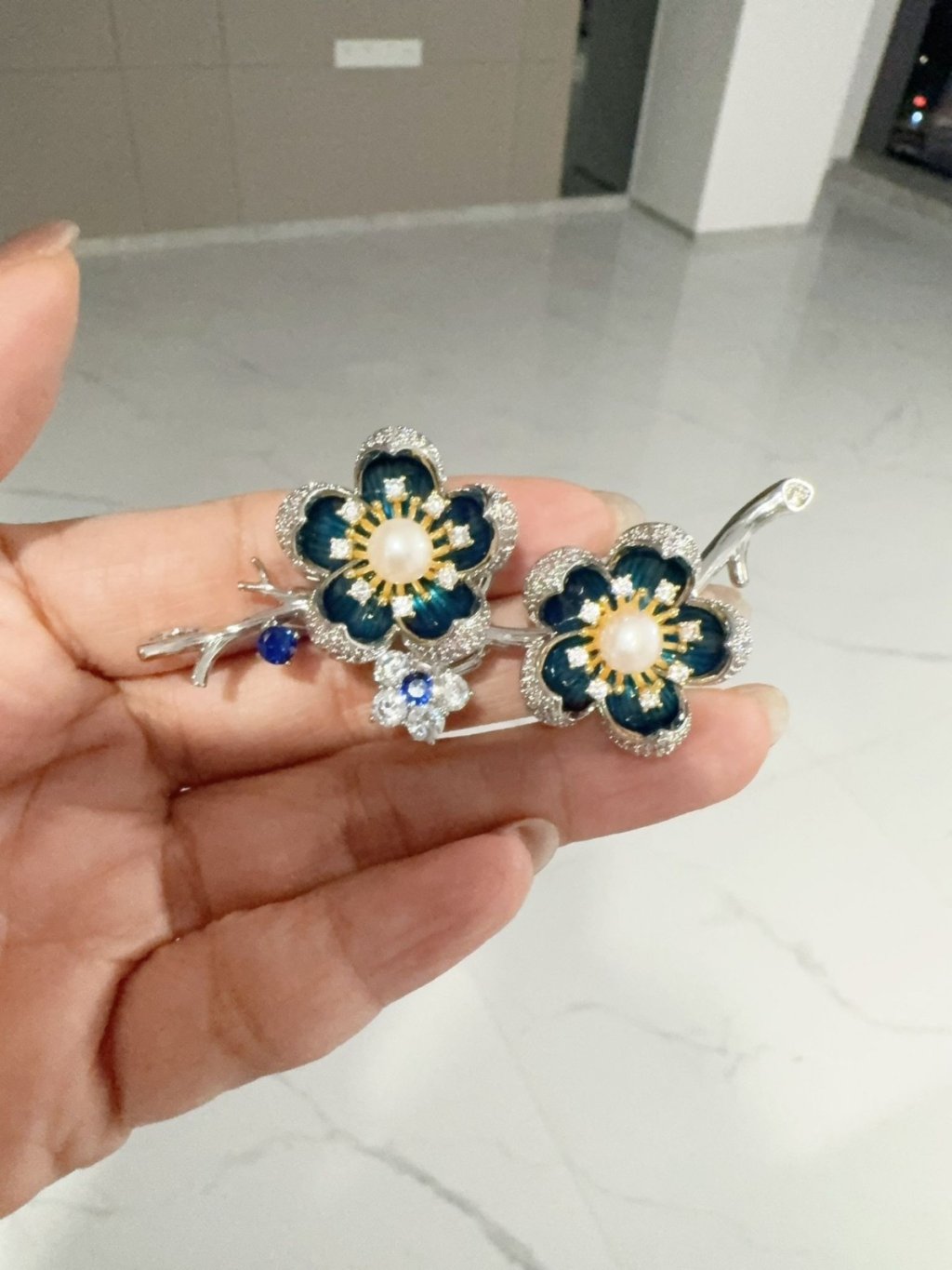 天然淡水珍珠/S925 銀/鋯石/ 胸針