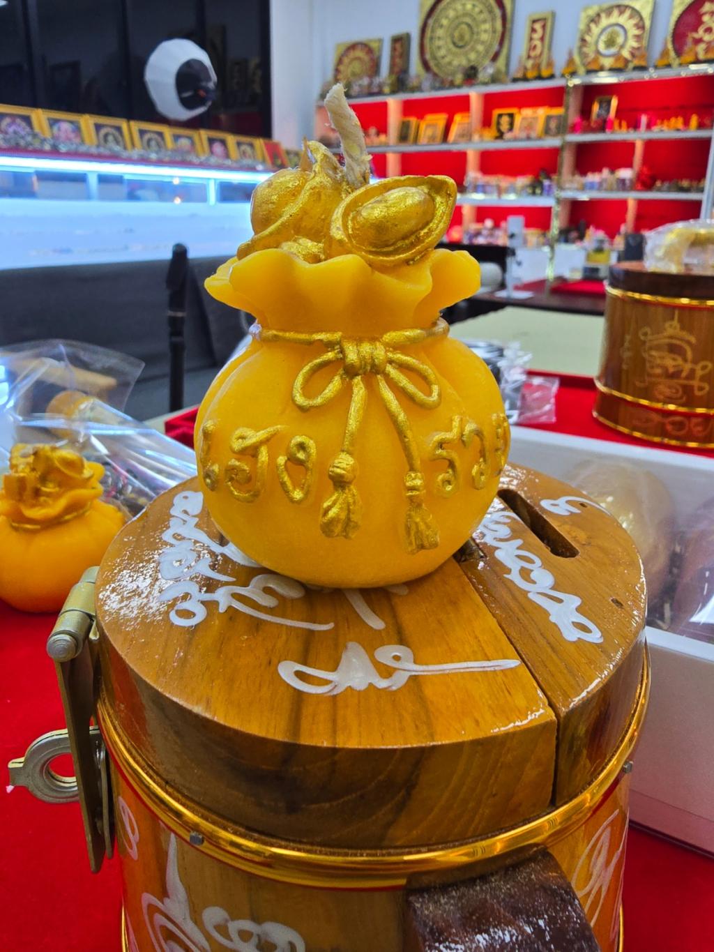 發財包包蠟燭,泰國以蠟燭儀式最為有名,定期已發財包包蠟燭許願,並燃點,增財大富,錢財機會大增