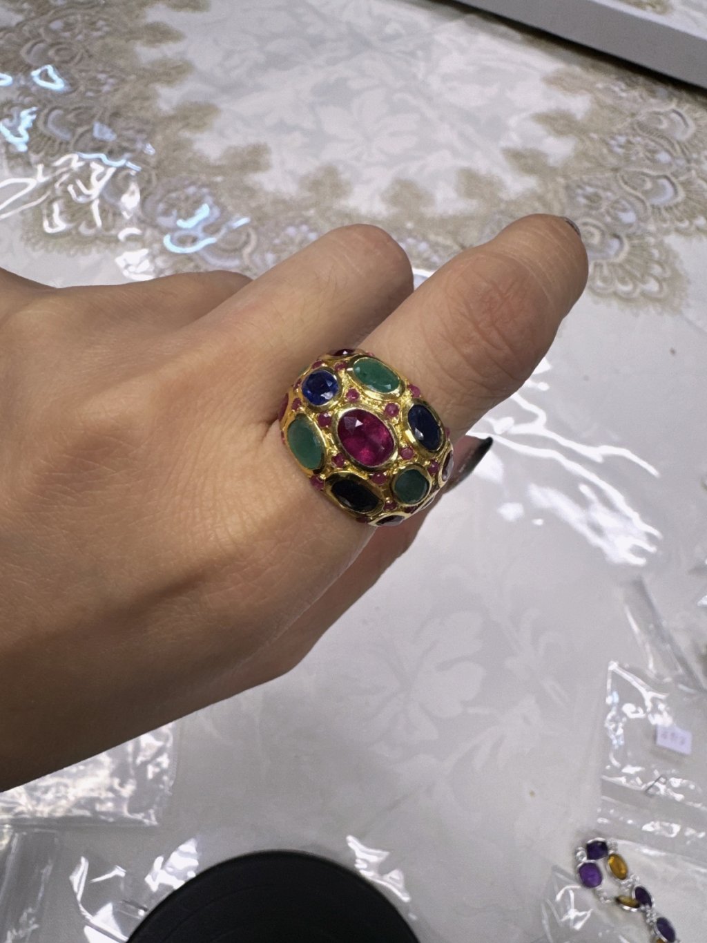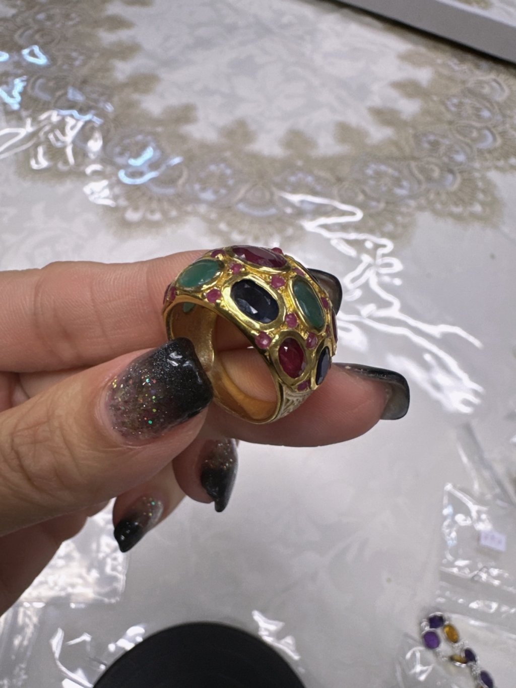 No.67--style 7 mix gem stone ring 15.5 size