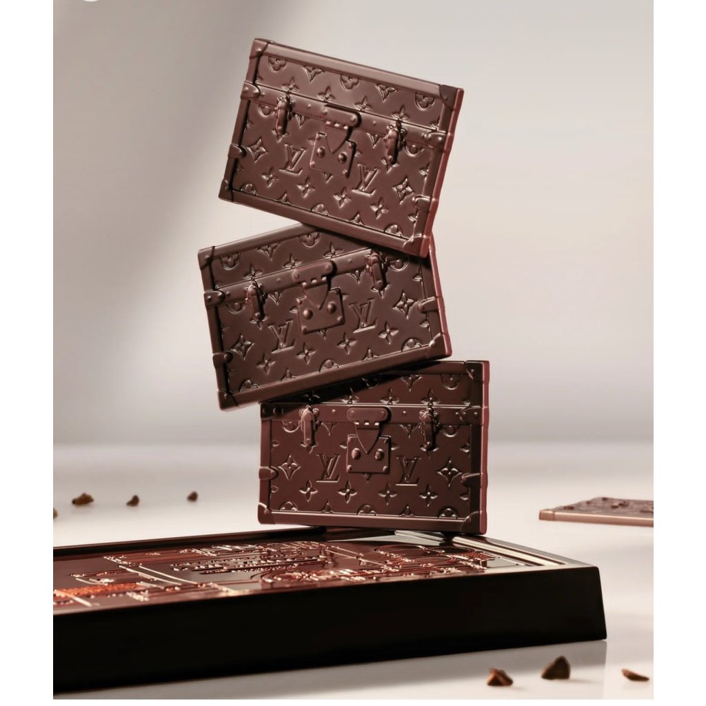 榛果巧克力醬和焦糖,並飾有四個路易威登旅行箱