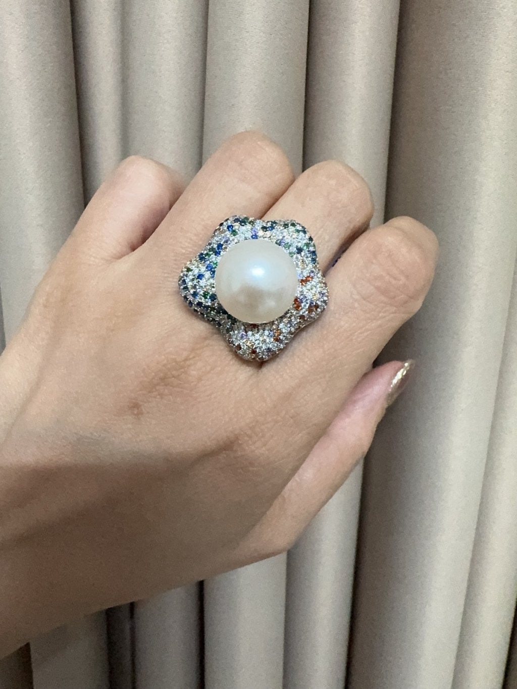 BKJS 3 / S925銀 海水珍珠 介子/米白色/size:15