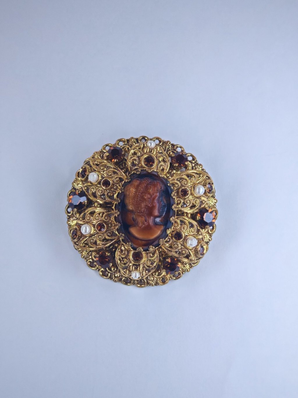 V22 西德(稀有)-掐絲鏤空棕色卡梅奧宮廷胸針
