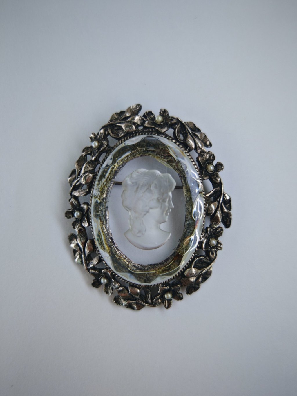 浮雕為水晶雕刻,邊框以鍍銀合金花葉鏤空雕刻,鑲嵌珍珠修飾,整體定位為20世紀維多利亞時期復古宮廷風